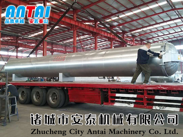 蒸汽由罐底進入,在罐底設(shè)置蒸汽進口由自動閥門控制,蒸汽擴散管豎向在罐底排列,擴散管中小口(3mm、4mm、5mm)按一定規(guī)則和角度彌補排列,確保蒸汽進入到罐內(nèi)后溫度均勻向四周擴散,防止蒸汽擴散不均造成的產(chǎn)品質(zhì)量不同。設(shè)定工作程序后,控制系統(tǒng)自動進行升溫、保溫、硫化等工作,硫化結(jié)束后發(fā)出聲光提示并停止工作。